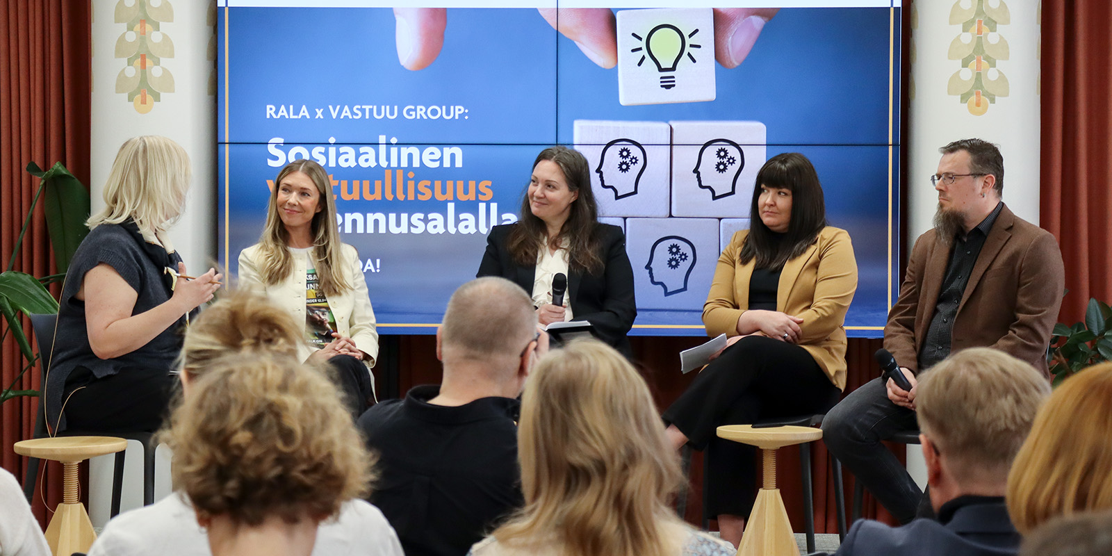 Tilaisuuden päättänyttä paneelikeskustelua veti vastuullisuuskonsultointiin keskittyvän Taigawise Oy:n toimitusjohtaja ja johtava yritysvastuuasiantuntija Hanna Liappis. Mukana olivat Helsingin seudun opiskelija-asuntosäätiö Hoasin vastuullisuuspäällikkö Marika Nyyssönen, YIT:n sosiaalisen vastuullisuuden päällikkö Greta Andersson, Rakennusliiton vanhempi asiantuntija Tomi Malmström ja Vastuu Groupiin kuuluvan LinnumaaLexin operatiivinen johtaja Tarja Anunti.