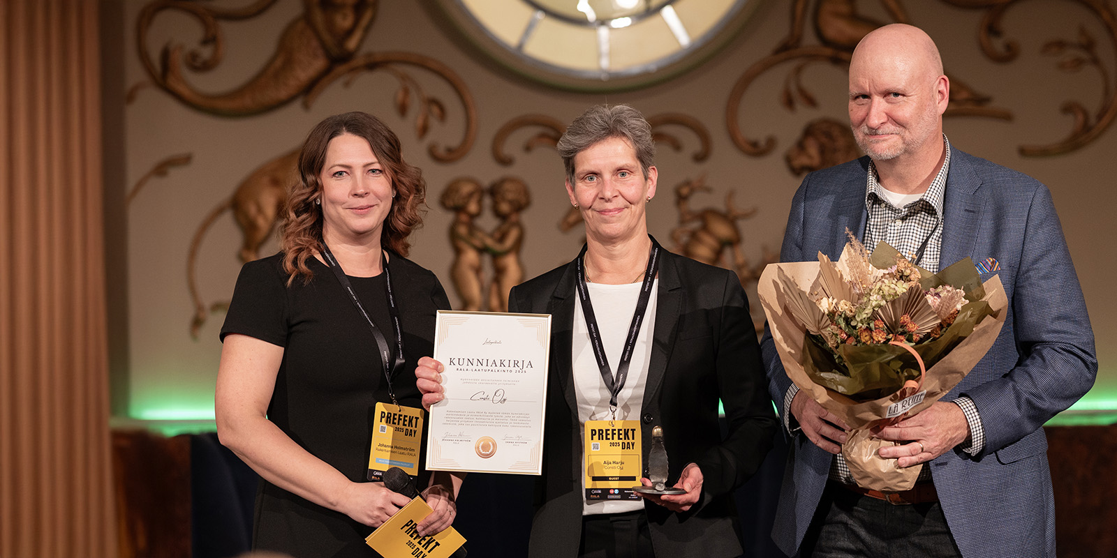 Vuoden 2025 RALA-laatupalkinto myönnettiin Consti Oyj:lle tunnustuksena pitkäjänteisestä työstä ihmisten johtamisen ja henkilöstön hyvinvoinnin kehittämiseksi. Palkinto jaettiin perjantaina 24.10.2025 Helsingin Pörssitalolla järjestetyssä Prefekt Day -tapahtumassa. Palkinnon ottivat vastaan kuvassa RALAn toimitusjohtaja Johanna Holmströmin (vas.) kanssa poseeraavat henkilöstöjohtaja Aija Harju ja toimitusjohtaja Esa Korkeela.